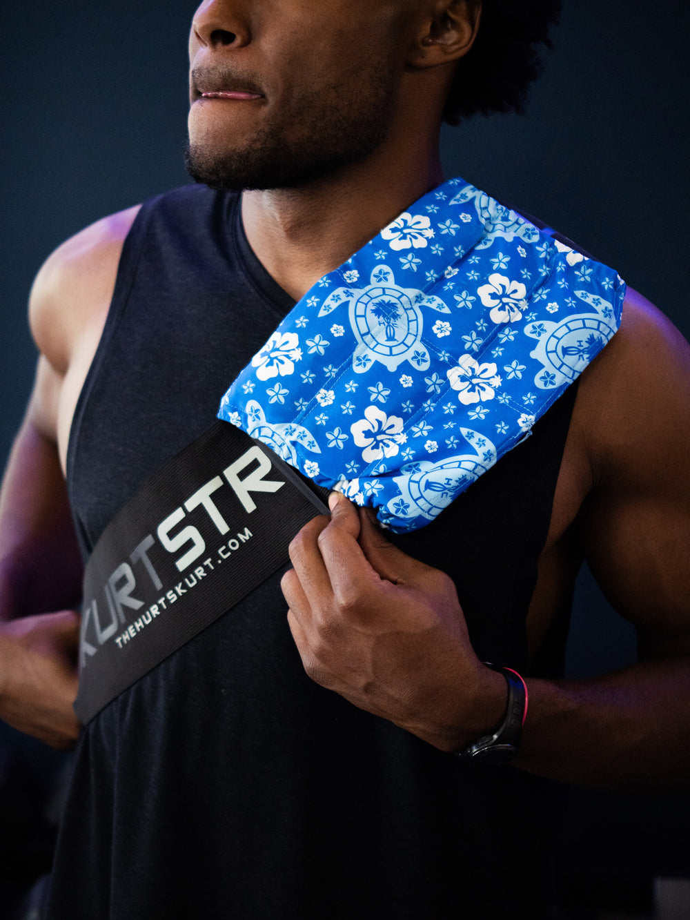 For the shoulder we recommend pairing the Large Hurtskurt® with our SkurtStrap™ accessory. The Large offers our largest coverage area and molds beautifully to any part of the body. By sliding the SkurtStrap™ through the Large, you create a versatile product that can easily be placed anywhere on the body with ease and comfort, and at a fraction of the cost of buying customized products for just one area.
